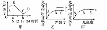 (1)甲图中,一昼夜中CO2浓度最高和最低的时间点分别是a时和b时,a时间点的含义是 ,b点时间点的含义是 。