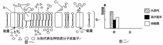 ?4.图一表示某种膜结构以及物质进出膜方式,图二表示某细胞在进行分泌蛋白的合成和分泌前几种生物膜的面积。请据图回答: