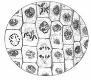 (四)制片:将根尖放在载玻片上,加一滴清水,并用镊子把根尖弄碎,盖上载玻片,用拇指轻轻按压载坡片……
