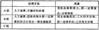 Ⅰ.取大小相等、活性相当的同种变形虫9只,分成A、B、C三组,每组三只。