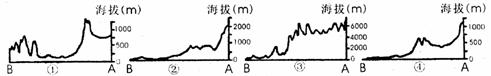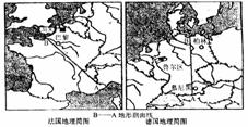 3.在下列沿图中B-A剖面线所做的地形剖面图中,正确表示法国与德国地形分布的一组是