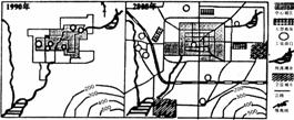 下图是我国某城市发展过程中1990年和2008年比较图。读图,回答7~8题。
