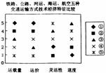 读右图,纵坐标1~5代表各种运输方式的运载量、运价、灵活性、速度四项指标由优到劣的变化,回答9~10题。