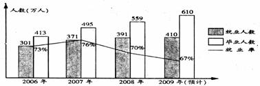 38.(32分)就业乃民生之本。面对当前严峻的经济形势,促进就业是2009年政府面临的民生最大考题,大学毕业生、困难就业群体和农民工“三大群体”的就业工作,又是2009年就业工作的重中之重。