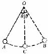 4.质量为m,带电量为+q的小球用一绝缘细线悬于O点。开始时它在A、B之间来回摆动,OA、OB与竖直方向OC的夹角均为θ(如图所示)。(1)如果当它摆动到B点时突然施加一竖直向上的、大小为E=mg/q的匀强电场,则此时线中拉力T1=______;(2)如果这一电场是在小球从A点摆到最低点C时突然加上去的,则当小球运动到B点时线中的拉力T2=_____________。