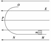 V/m的水平匀强电场中,有一光滑的半圆形绝缘轨道OPN与一水平绝缘轨道MN连接,半圆形轨道平面与电场线平行,P为ON圆弧的中点,其半径R=