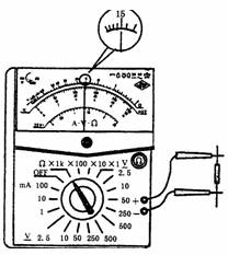 H.将两表笔短接,调整欧姆调零旋钮,使指针指到零欧姆位置。