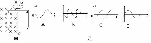 21. 如图甲所示,单匝矩形线圈的一半放在具有理想边界的匀强磁场中,线圈轴线OO?与磁场边界重合.线圈按图示方向匀速转动(ab向纸外,cd向纸内).若从图示位置开始计时,并规定电流方向沿a→b→c→d→a为正方向,则线圈内感应电流随时间变化的图象是下图乙中的哪一个?