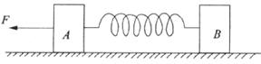 10.如下图所示,在一个足够大的光滑水平面上,有两个质量相同的木块A、B中间用轻弹簧相连,在水平恒力作用下,向左一起做匀加速直线运动,当撤去F后