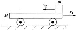 11.如下图所示,水平面上的一小车,质量为M,以速度