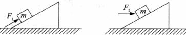 10.如图所示,分别用两个恒力F1和F2先后两次将质量为m的物体由静止开始沿同一粗糙的固定斜面从底端推到顶端,第一次力F1方向沿斜面向上,第二次力F2方向沿水平向右,两次所用时间相同,在这两个过程中