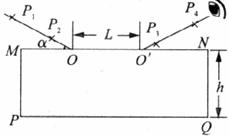 11.(5分)利用插针法测玻璃的折射率,实验中先将玻璃砖固定在水平桌面上的白纸上,画出玻璃砖两侧界面MN、PQ,在玻璃砖的一侧插好P1、P2大头针后,某同学发现在P1、P2同侧通过玻璃砖在如图所示装置也可观察到P1、P2的像。于是他在白纸上插大头针P3,使P3挡住P1、P2的像,同样方法,他又插入大头针P4,使P4挡住P3和P1、P2的像。取走玻璃砖,P1、P2连线交MN于O点,P3、P4连线交MN于