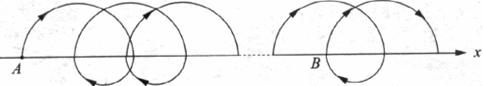 轴上方的轨迹都是半径为R的半圆,下方的都是半径为