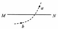 17.如下图所示,图中MN是由负点电荷产生的电场中的一条电场线。一带电粒子+q飞入电场后,只在电场力作用下沿图中虚线运动,a、b是该曲线上的两点,则下列说法正确是( )