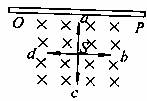 20.如下图所示,OP为足够长的水平挡板,其下方有垂直纸面向里的匀强磁场,磁场范足够大。S为一电子源,它可以向a、b、c、d四个垂直磁场的方向发射速率相同的电子,ac垂直于OP,bd平行于OP。不计电子重力,则最有可能击中挡板的是 ( )