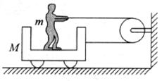 6.如下左图所示,光滑水平地面上的小车质量为M,站在小车水平底板上的人质量为