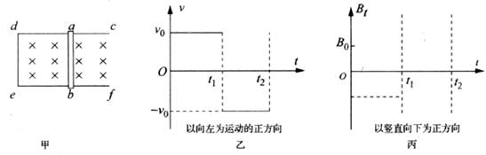 。当金属棒按图乙中的规律运动时,为使金属棒中始终不产生感应电流,请在图丙中示意地画出变化的磁场的磁感应强度