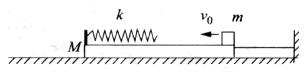 18.(12分)如下图所示,质量为M的长滑块静止在光滑水平地面上,左端固定一劲度系数为