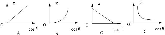 6.如下图示,一根轻弹簧上端固定在O点,下端拴一个钢球P,球处于静止状态。现对球施加一个方向向右的外力F,使球缓慢偏移,在移动中的每一个时刻,都可以认为钢球处于平衡状态。若外力F方向始终水平,移动中弹簧与竖直方向的夹角θ且弹簧的伸长量不超过弹性限度,则下面给出的弹簧伸长量x与cosθ的函数关系图象最接近的是
