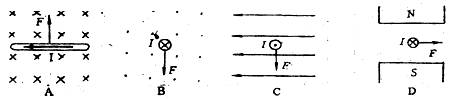 8..以下各图画出了通电导线在磁场中所受磁场力方向,导线中电流方向以及磁场方向之间的关系,其中正确的是: ( )