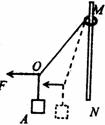 7.轻绳一端系在质量为m的物体A上,另一端系在一个套在粗糙 竖直杆MN的圆环上。现用水平力F拉住绳子上一点O,使物体A从图中实线位置缓慢下降到虚线位置,但圆环仍保持在原来位置不动。则在这一过程中,环对杆的摩擦力F1和环对杆的压力F2的变化情况是( )