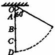 直并与竖直方向成60°角,如图所示,在O点正下方有A、B、C三点,并且有 当在A处钉钉子时,小球由静止下摆,被钉子档住后继续摆动的最大高度为hA;当在B处钉钉子时,小球由静止下摆,被钉子档住后继续摆动的最大高度为hB;当在C钉子时,小球由静止下摆,被钉子挡住后继续摆动的最大高度hC,则小球摆动的最大高度hA、hB、hC之间的关系是 ( )