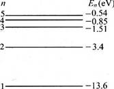 激发态时,吸收光子的能量是E,若氢原子从量子数