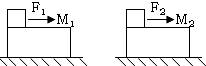 21.如图所示,在光滑水平面上,放着两块长度相同,质量分别为M1和M2的木板,在两木板的左端各放一个大小、形状、质量完全相同的物块,开始时,各物均静止,今在两物体上各作用一水平恒力F1、F2,当物块和木板分离时,两木板的速度分别为v1、v2,物体和木板间的动摩擦因数相同,下列说法中正确的是 ( )