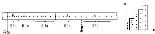 (2)(12分)某同学做《测定匀变速直线运动的加速度》实验得到如图所示的纸带,该同学按相等时间间隔取连续的几段位移,从它们的分界点将纸带剪断,将剪得的几段纸带按图所示顺序贴在坐标中,各段紧靠但不重叠,然后可得到一条表示v- t关系的图线,从而求出加速度。