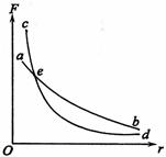 A.ab为斥力曲线,cd为引力曲线,e点横坐标的数量级为10―
