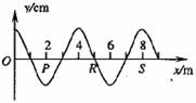 7.如图为一列沿x轴正方向传播的简谐横波在t=0时刻的波形,当R处质点在t=0时刻的振动状态传到S处时,关于P、R处的质点,下列说法正确的是( )