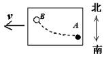 3.如图(俯视图)所示,以速度v匀速行驶的列车车厢内有一水平桌面,桌面上的A处有 一小球.若车厢中的旅客突然发现小球沿图中虚线由A向B运动.则由此可判断列车( )