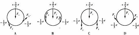 的下夸克,一简单模型是三个夸克都在半径为r的同一圆周上,如下图所示.下图给出的四幅图中,能正确表示出各夸克所受静电作用力的是 ( )