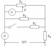 6.如图所示,R1=30Ω,R4=20Ω,电源电压恒为30V,现安培表示数为