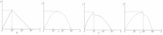 12. 如图所示,物体静止在水平的木板B上,现将木板左端支在地面上,右端慢慢抬起,当木板B与水平地面间夹角θ从0°到90°的范围内变化时,描述物体A受到摩擦力变化情况的图线可能是哪一个?( )