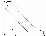 作v-t图求解。从图中可得两车所要保持的距离就是平行四边形abdc的面积,其面积恰等于矩形Oace的面积,即: Sabdc=25×1=