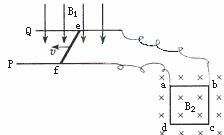 5.如图所示,P、Q为水平面内平行放置的光滑金属长直导轨,间距为L1,处在竖直向下、磁感应强度大小为B1的匀强磁场中。一导体杆ef垂直于P、Q放在导轨上,在外力作用下向左做匀速直线运动。质量为m、每边电阻均为r、边长为L2的正方形金属框abcd置于竖直平面内,两顶点a、b通过细导线与导轨相连,磁感应强度大小为B2的匀强磁场垂直金属框向里,金属框恰好处于静止状态。不计其余电阻和细导线对a、b点的作用力。问: