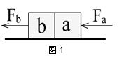 6、如图4所示,两块固连在一起的物块a和b,质量分别为ma和mb,放在水平的光滑桌面上。现同时施给它们方向如图所示的的推力Fa和拉力Fb,已知Fa>Fb,则a对b的作用力( )