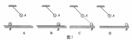 7、下面各图中A球系在绝缘细线的下端,B球固定在绝缘平面上,它们带电的种类以及位置已在图中标出,A球能保持静止的是( )