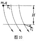 12、空间某区域电场线分布如图所示,带电小球(质量为m,电量为q)在A点速度为v1,方向水平向右,至B点速度为v2,v2与水平方向间夹角为α,A、B间高度差为H,以下判断正确的是( )