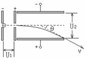 12. 如图,电子在电势差为U1的加速电场中由静止开始运动,然后射入电势差为U2的两块平行极板间的电场中,入射方向与极板平行,整个装置处于真空中,重力不计,在满足电子能射出平行板区域的条件下,下述四种情况中,一定能使电子的偏转角