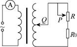 5.一理想变压器的原线圈连接一只交流电流表,副线圈接入电路的匝数可以通过触头Q调节,如下图所示。在副线圈两输出端连接了定值电阻R0和滑动变阻器R,在原线圈上加一电压为U的交流电,则 ( )