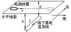 6.如图所示,在水平地面下有一条沿东西方向铺设的水平直导线,导线中通有自东向西稳定、强大的直流电流。现用一闭合的检测线圈(线圈中串有灵敏的检流计,图中未画出)检测此通电直导线的位置,若不考虑地磁场的影响,在检测线圈位于水平面内,从距直导线很远处由北向南沿水平地面通过导线的上方并移至距直导线很远处的过程中,俯视检测线圈,其中的感应电流的方向是:( )