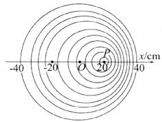 轴正方向匀速移动,O点是它的初始位置。图示为观察到的某一时刻的水面波,图中的实线表示水面波的波峰位置,那么水面波的传播速度及小球P匀速移动的速度分别是