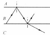 10.如下图是光在A、B、C三种介质中传播时发生反射和折射的情况,三种介质的折射率分别为
