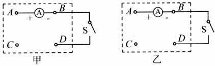 12.如下图所示,现有两阻值相等的定值电阻R1、R2,一个提供恒定电压的电池组,导线若干,试用以下器材,按设计的两种不同方案,分别接在附图中A、B、C、D的接线柱上,使它们各组成一个完整的电路,并使甲、乙两种电路分别都能同时满足以下三项要求: