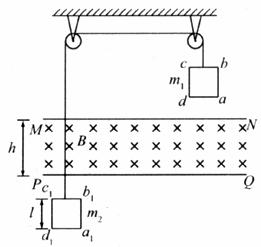 边是水平的,两线框之间的空间有一匀强磁场区域,该区域的上、下边界MN和PQ均与