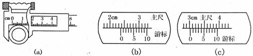 14.(6分)如图(a)所示,用一游标卡尺测一根金属管的内径和外径时,卡尺上的游标位置分别如下图(b)和图(c)所示,这根金属管内径读数是 cm,外径读数是 cm,管壁厚 cm。
