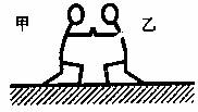 6.如图所示,一个大人(甲)跟一个小孩(乙)站在水平地面上手拉手比力气,结果大人把小孩拉过来了。对这个过程中作用于双方的力的关系,不正确的说法是 ( )