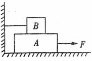 15.如图所示,物体A质量为4┧,物体B质量为2┧,A与B、B与地面的动摩擦因数相同,物体B用细绳系住,当水平力F=32N时,才能将A匀速拉出,求接角面间的动摩擦因数。(g=
